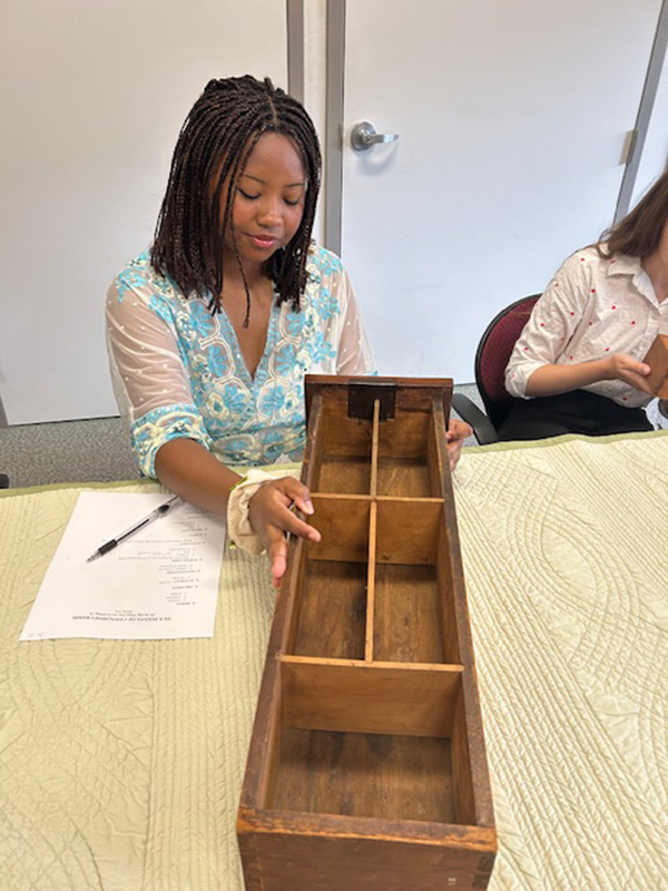 The time I spent in the Historic Deerfield Summer Fellowship Program through a Continuing Education Scholarship from the Decorative Arts Trust changed the lenses through which I view history. Deerfield Fellows gain knowledge and perspectives from experts regarding all aspects of New England material culture, including metalworking, cabinetmaking, printing, textile development, and trade (figures 1 and 2). Additionally, we learned the significance of archival materials, such as wills, probate inventories, and genealogies, to the study of objects.
